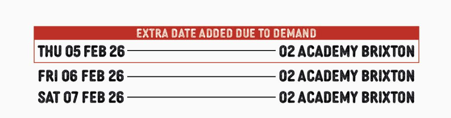 PRE-SALE GOES LIVE AT 10AM BST ON THE 1ST OCTOBER 2025 - YOU WILL RECEIVE A LINK SHORTLY BEFORE 10AM BST IF YOU SIGN UP ABOVE